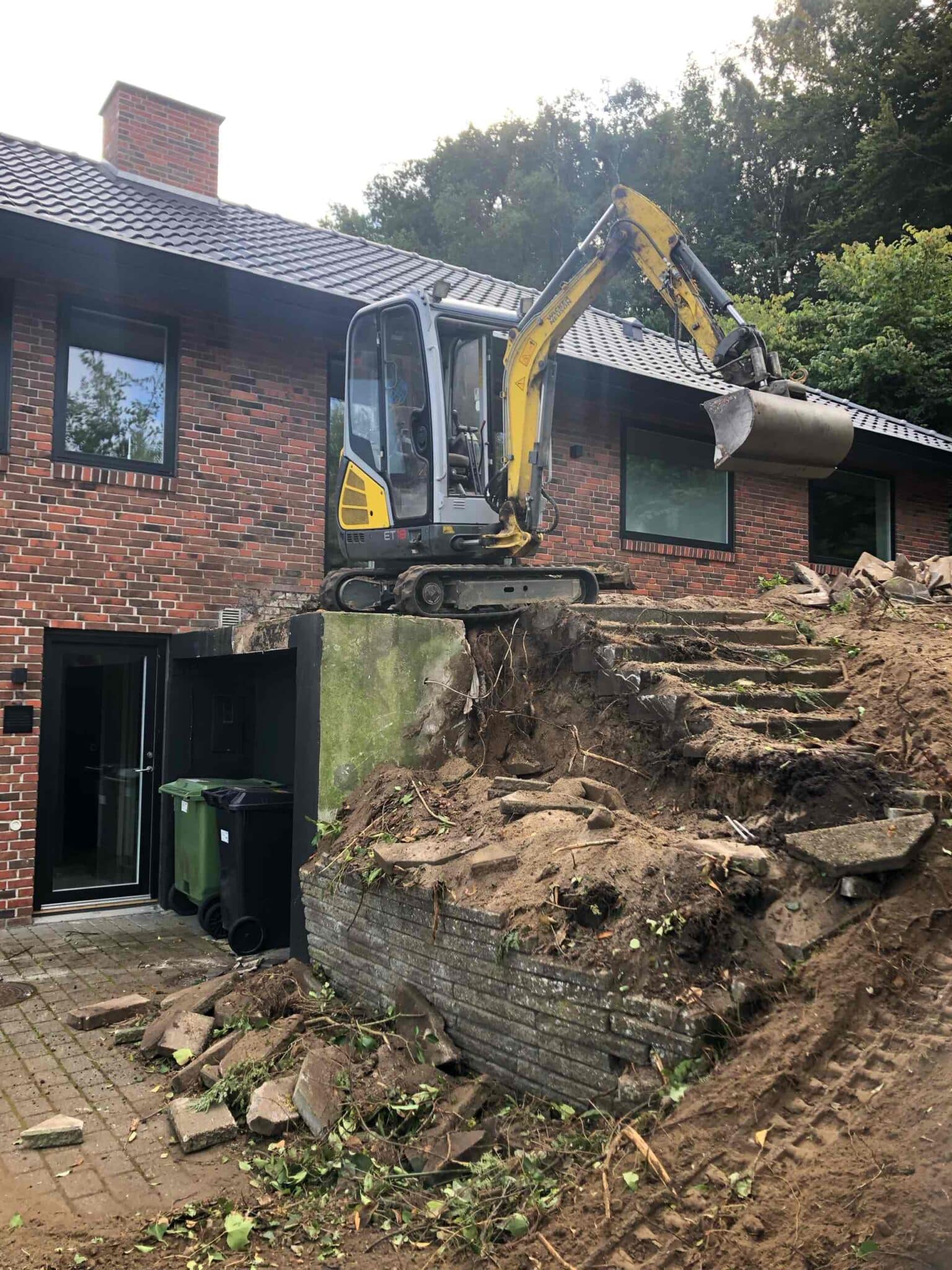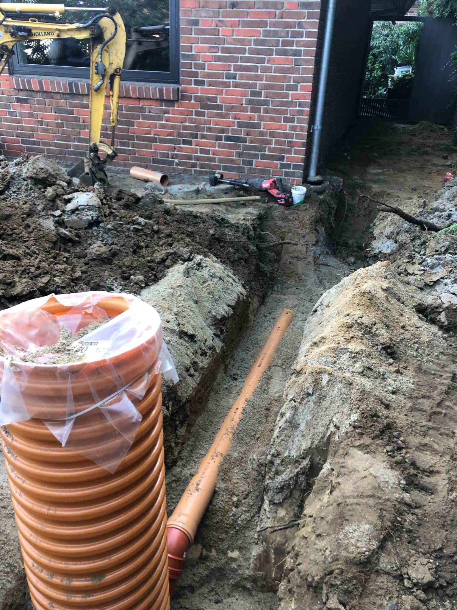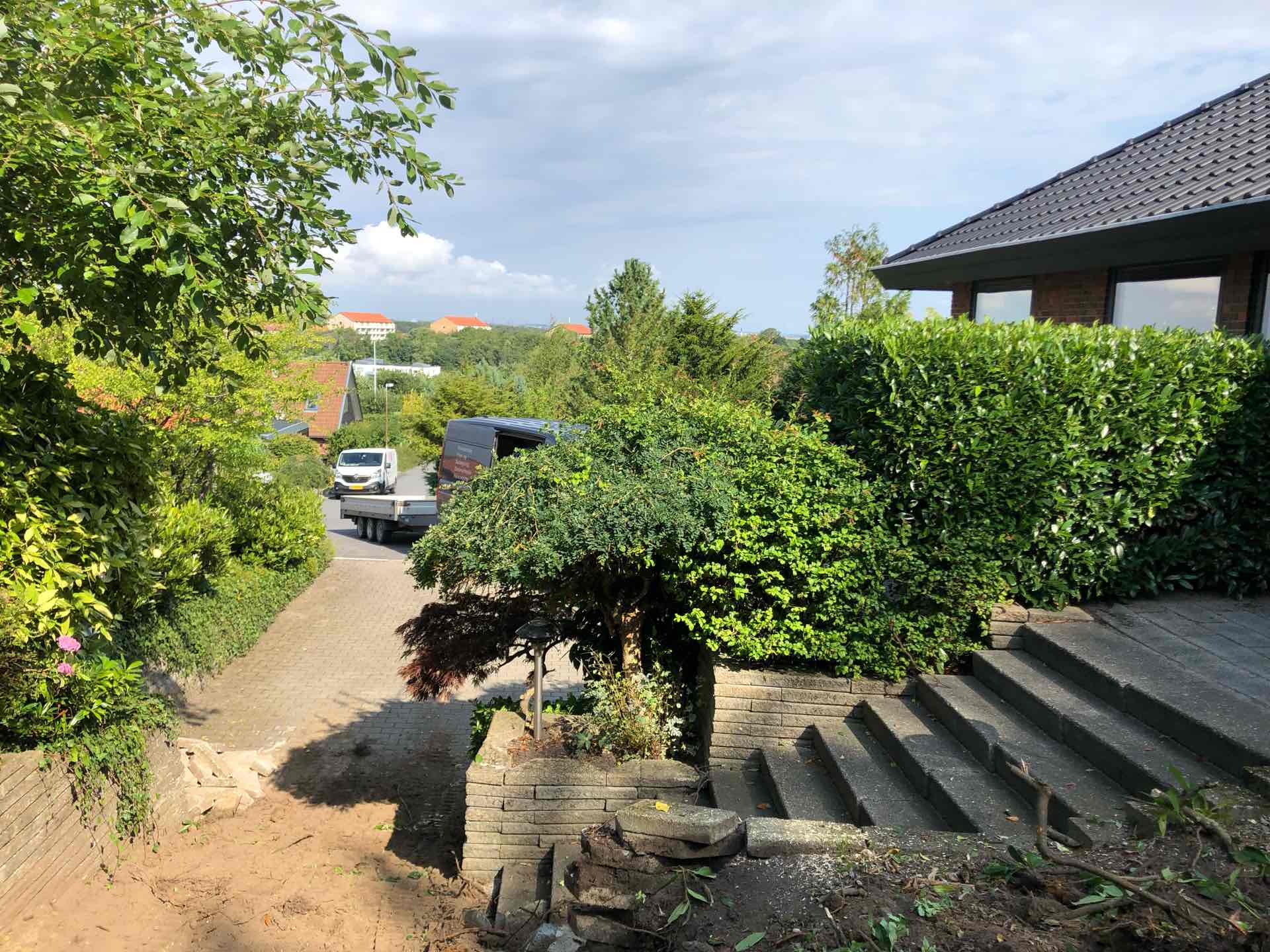 Når vi arbejder i etablerede haver, kommer der altid noget uventet frem. Vi fandt 2 utætte beton tagbrønde som vi i samråd med kunden udskiftede til et sandfangs brønd. Så nu får kunden heller ikke fugt i fundamentet på huset derfra.